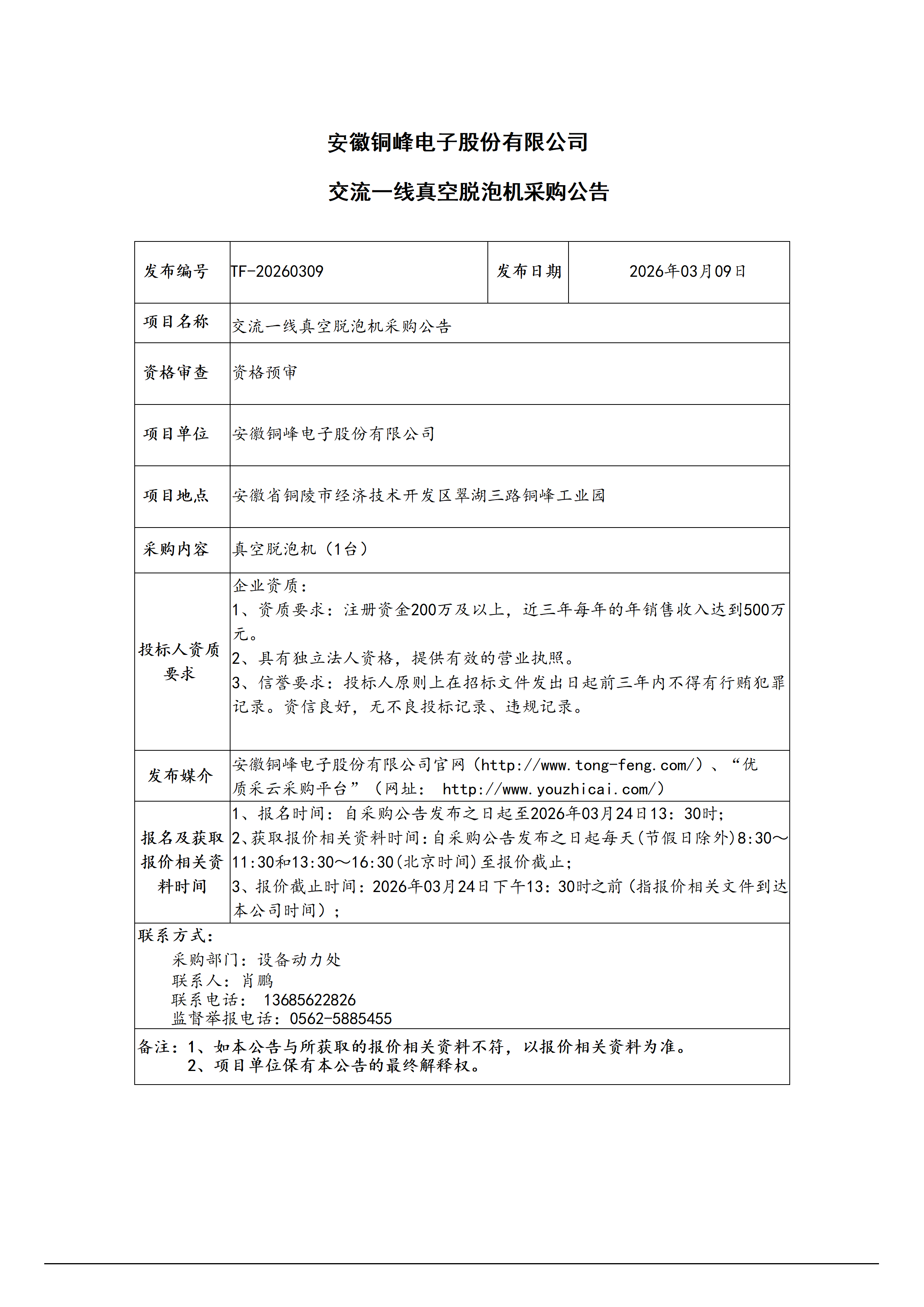 安徽銅峰電子股份有限公司 (新一線電動登高車采購招標公告)_01