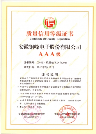 AAA質(zhì)量信用等級(jí)