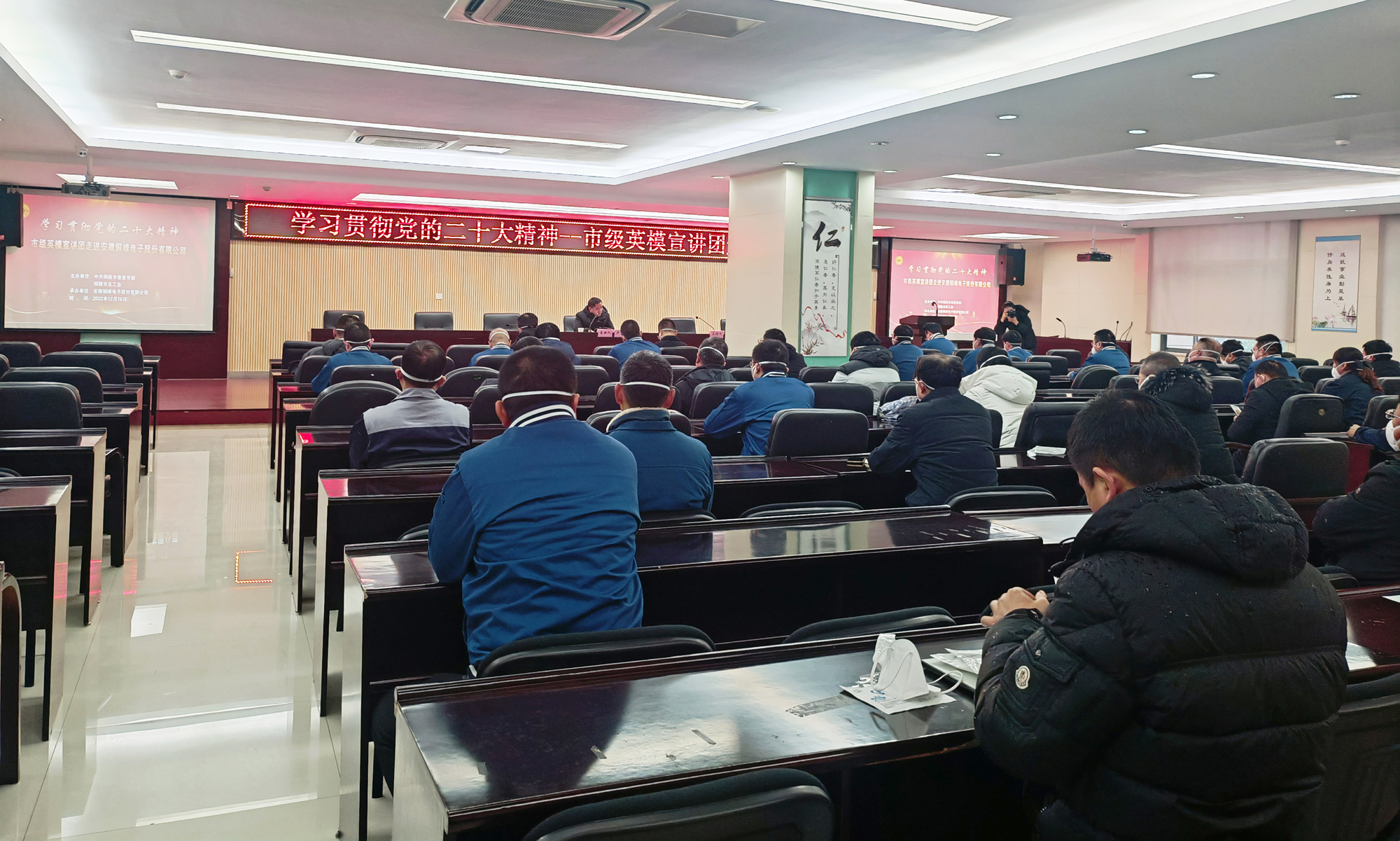 為深入學(xué)習(xí)宣傳貫徹黨的二十大精神,大力弘揚(yáng)勞模精神、勞動(dòng)精神、工匠精神,推動(dòng)黨的創(chuàng)新理論深入人心、落地生根,12月16日下午,由市委宣傳部、市總工會(huì)主辦、公司承辦的“學(xué)習(xí)貫徹黨的二十大精神--市級(jí)英模宣講團(tuán)走進(jìn)銅峰電子”宣講報(bào)告會(huì)在公司辦公樓二樓職教室舉行。會(huì)上邀請(qǐng)全國(guó)五一勞動(dòng)獎(jiǎng)?wù)芦@得者、銅陵金隆銅業(yè)公司技術(shù)主管盧鵬勞模作黨的二十大精神專題宣講。公司黨委書記、董事長(zhǎng)黃明強(qiáng)等公司黨政領(lǐng)導(dǎo)班子成員參加宣講報(bào)告會(huì),公司各黨支部書記、分工會(huì)主席和先進(jìn)模范、新黨員、入黨積極分子、群眾代表等聆聽(tīng)了報(bào)告。宣講報(bào)告會(huì)由公司黨委副書記潘世宇主持。
