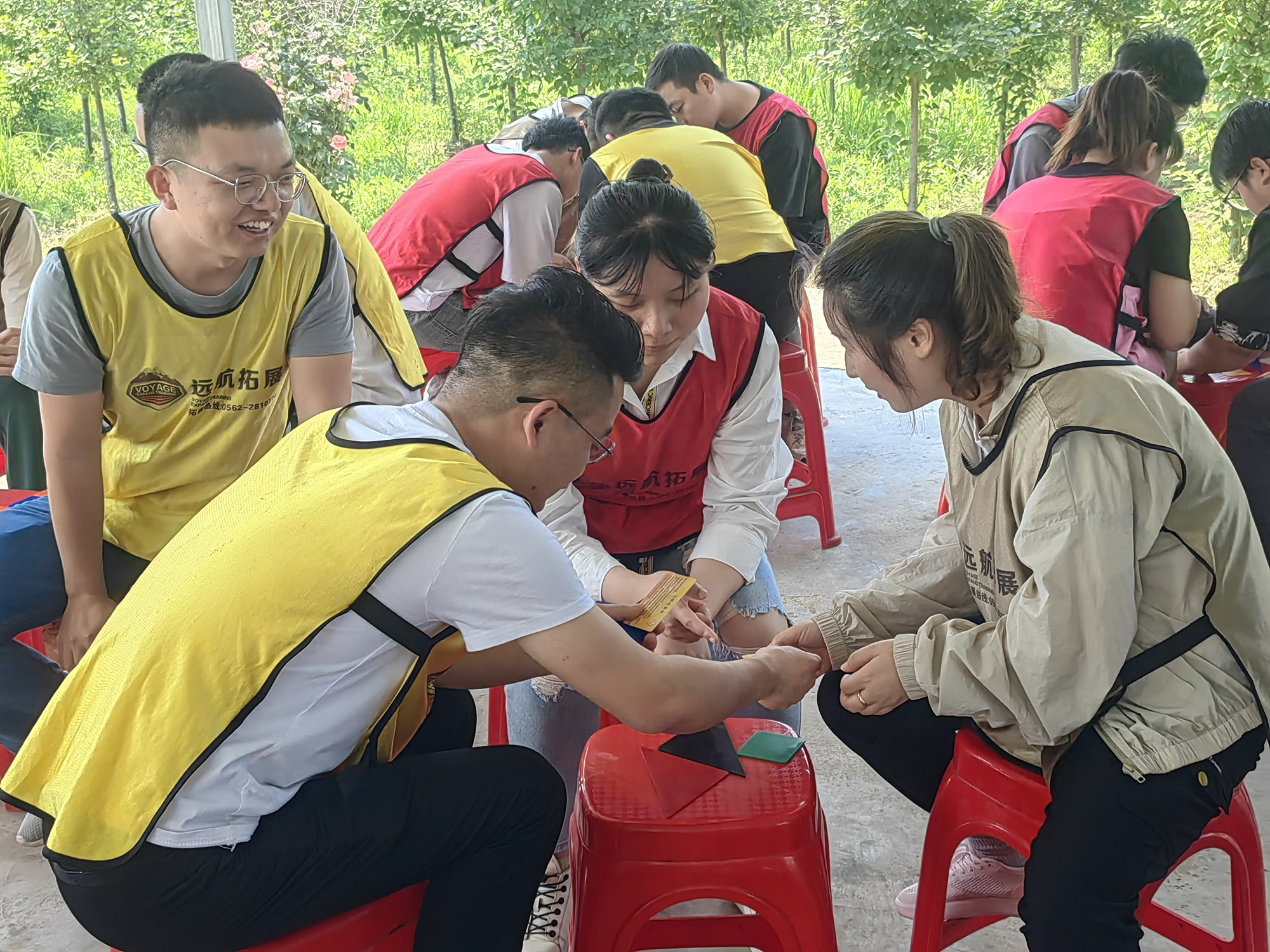 團(tuán)建活動中,青年員工分組參與,先后開展了“破冰游戲”“巧拼七色板”“自助燒烤”“真人CS對抗”等趣味團(tuán)建活動?;顒又写蠹覉F(tuán)結(jié)一心,吶喊助威,笑語連連,既有效釋放了工作壓力,加強(qiáng)了溝通交流,展示了青年員工們凝心聚力、團(tuán)結(jié)互助、青春洋溢的精氣神,又在寓教于樂中強(qiáng)化了青年員工責(zé)任擔(dān)當(dāng)、資源共享、分工合作、相互信任的團(tuán)隊協(xié)作意識。