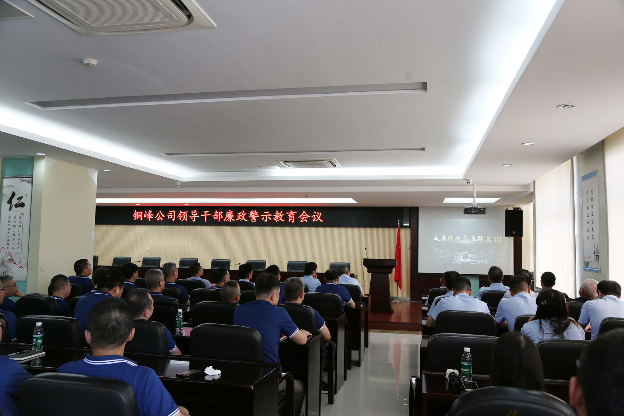 為深入推進“一把手”、年輕干部、新提拔干部、關(guān)鍵崗位干部等四類重點群體的學(xué)習(xí)教育工作,進一步加強黨風(fēng)廉政建設(shè),7月4日下午,公司在辦公大樓二樓職教室召開領(lǐng)導(dǎo)干部廉政警示教育會議。公司黨政領(lǐng)導(dǎo)班子全體成員,各黨(總)支部書記,各單位、部門負責(zé)人,機關(guān)職能部門主管和分(子)公司部門經(jīng)理、車間主任及以上人員共計100余人參加會議。
